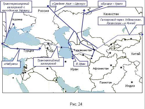 В связи с этим следует отметить, что проект транскаспийского газопровода, который Ниязов обсуждал с представителями ЕС, может быть дополнен трансчерноморским газопроводом, с его выходом на Украину (рис. 24).