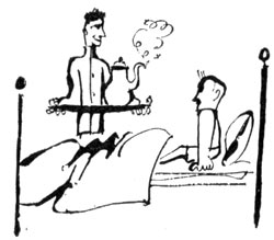 В гостиницах сервис начинается с утреннего чая. Где-то в шесть или семь часов утра вам постучат в дверь. Вы вскочите, не понимая спросонья, что произошло — пожар или телеграмма из дому, в чем спали, отопрете дверь, и в номер войдет невозмутимый слуга с подносом. На подносе чай, молоко и печенье. Иногда маленькое пирожное. Слуга поставит поднос на столик возле кровати и степенно удалится. На следующий день с вечера предупредите, что не привыкли кутить на рассвете, попросите не будить и ляжете спать со спокойной совестью. Но все равно в шесть часов утра или в половине седьмого к вам постучат. «Кто там?» — гаркнете вы на иностранном языке. «Вы не хотите чаю?» — спросит вежливый голос. «Я же предупреждал…» — начнете вы раздраженно. «Большое спасибо!» — скажет вежливый голос. Вы упадете на подушку и только погрузитесь в сон, как он, разносчик чая, снова появится. «Вы не хотите?» Есть только один способ избавиться от этого сервиса — покориться ему. Выпить чашку прекрасного чая в семь часов утра и завалиться спать.