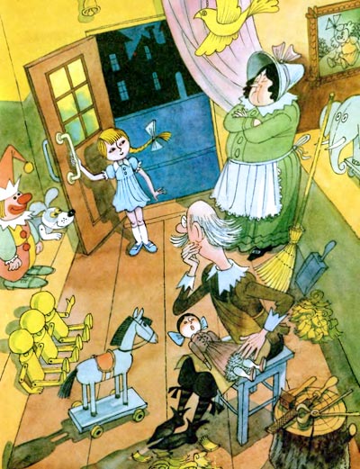 — Вот ты от него и избавилась! — сказал мастер жене. — А говорила, что он никому не нужен. Теперь уж его не вернёшь! И у меня такое чувство, будто мы осиротели… Впрочем, Щелкунчик не прогадал! Чем весь день слушать, как ты его ругаешь, лучше подружиться с девочкой, которая разглядела его одиночество.