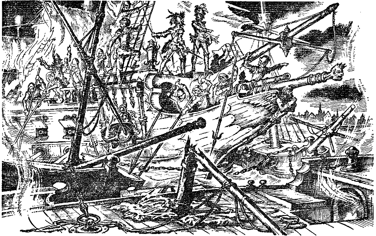 — А их корабли? — возразил бургомистр. — Теперь дует норд-вест, они прорвутся сквозь наши заграждения и через два часа будут в городе.