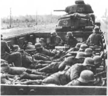 Охрана эшелона: трофейная советская бронедрезина и взвод солдат.
