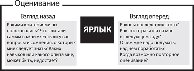Однако компонент будущего особенно важно понимать, когда речь идет об оценивании. Что это означает для меня? Что произойдет дальше, чего от меня ждут? Что мне делать теперь, когда я знаю свое нынешнее положение?
