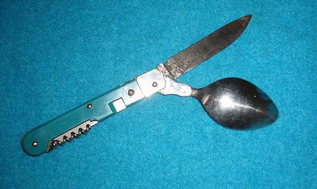 складной-раскладной ножичек имеет не только несколько различных «лезвий», но и в придачу штопор, который, если уж зацепится за что-то, то потом не оторвёшь.Я отвязал тонкую верёвку от наших рюкзаков и стал пытаться сделать надёжный узел на ноже-раскладушке. Не хватало ещё, чтобы в самый неподходящий момент мы уронили в эту «пропасть» и наш «волшебный» ножик. Таким образом можно по очереди пытаться поймать сбежавшую от нас верёвку, метая в неё всякие предметы, плохо привязывая их. Предметов у нас с собой не так уж имного. Через некоторое время мы имеем шанс остаться тут в пещерке посредине горы совсем без ничего. Будем начинать новую жизнь с голым задом, как древние люди, живущие в пещерах тысячи лет назад.