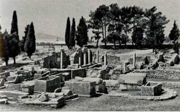 Для изучения архитектуры раннего христианства очень интересен открытый еще в XIX столетии Ф. Буличем комплекс Мана- стирина (Старый монастырь), включающий ряд разновременных построек от II до VI века. Он находится в северной части древней Салоны, за частично сохранившейся крепостной стеной города. Фрагменты архитектурных сооружений — светлые колонны, базы, капители, саркофаги — красиво выделяются на фоне стройных кипарисов и раскидистых крон пиний.