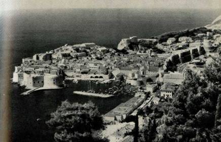 В IX столетии, как повествуют самые ранние документы, Дубровник, входивший с первых веков своего существования в состав Византийской империи, выдержал пятнадцатимесячную осаду арабов (866–867). Уже тогда он был прекрасно укреплен и обнесен высокими стенами с боевыми башнями, сооруженными, по преданию, в 681 году. На протяжении X–XII столетий, наряду с постоянными работами по укреплению и расширению стен, возводились жилые и культовые здания. Так, в 972 году была построена церковь св. Влаха (Власия) в память избавления от одного из нашествий венецианцев. Св. Влах, якобы предупредивший об опасности, стал с этого времени покровителем города. Поэтому впоследствии Дубровницкую республику называли республикой святого Влаха. Его многочисленные изображения встречаются в живописи и в прикладном искусстве, а фигуры, высеченные в камне, украшают и поныне ворота и стены крепости.