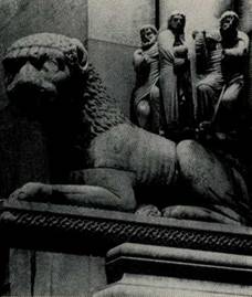 Перед входом в храм, как бы охраняя его, лежит египетский сфинкс, когда-то украшавший портик Мавзолея.