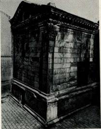 Напротив Мавзолея находится изящный по пропорциям маленький храм Юпитера с криптой в цокольном этаже. В былые времена его портик хорошо просматривался от Перистиля — сейчас храм скрыт более поздними постройками. Первоначально он был посвящен Асклепию, древнегреческому богу врачевания, который почитался иллирийцами на всем побережье Адриатики еще со времени появления первых греческих поселений. До наших дней прекрасно сохранилась вся центральная часть храма. Это — прямоугольное, стоящее на высоком основании здание, под двускатной крышей, с гладкими стенами, выложенными из ровных квадров светлого камня. Стройность и общее изящество его подчеркивают расположенные по углам пилястры с резными капителями. Небольшой фриз в верхней части и карниз крыши украшены резным орнаментом. С западной стороны храма раньше находился шестиколонный с фронтоном портик. Сейчас можно видеть только редкую по красоте дверь с резным антаблементом на скульптурных консолях. Последний богато орнаментирован рельефным плетением из акантовых листьев с включением фигурок детей, птиц, грифонов и ритмично стоящих между ними ваз. Мастерски выполненная, эта резьба заслуживает очень высокой оценки.