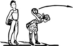 Старшие школьники могут перебрасывать надувной мяч через волейбольную сетку (веревочку, перекладину и др.), находящуюся от них в 2—3 м.