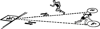 Несколько играющих располагаются на одной линии с интервалом 2—3 шага.