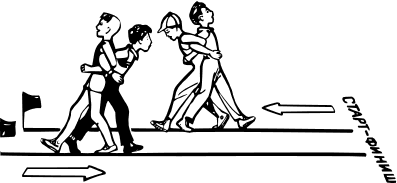 пара, первой закончившая состязание.Бег «на трех ногах»