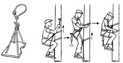 Поднимаются на беседке следующим образом: встают на нижнюю беседку и закидывают строп выше по мачте так, чтобы он плотно прилегал к сиденью снизу. Затем усаживаются и подтягивают ноги, а также поднимают нижнюю беседку, снова поднимаются и т. д. Перемещая скобу в сторону, можно передвигаться вокруг мачты.