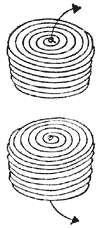 Когда бухты распускают, на концы троса обязательно ставят марки. Тросы, которые предназначены для хранения, нельзя оставлять влажными в закрытых помещениях. Их необходимо защищать не только от влаги, но и от воздействия солнечных лучей. Как в первом, так и во втором случае с волокон исчезает защитное масло, которым пропитаны тросы (обычно манильские). Толстые швартовы хранят на низких настилах или просторных стеллажах так, чтобы вода могла стекать, при этом бухты должны быть укрыты от солнца, дождя и снега брезентом. Мокрые тросы сворачивают в неплотные бухты, лучше всего восьмерками, как показано на рис. 5, и просушивают в хорошо вентилируемых помещениях.