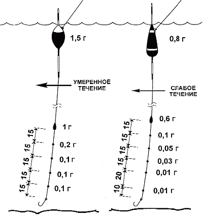 Построение оснастки для ловли в замкнутых водоемах и реках со слабым течением