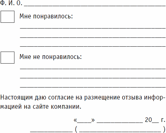 Ниже представлен образец бланка отзыва клиента. Он должен быть составлен в простой и легкой манере.