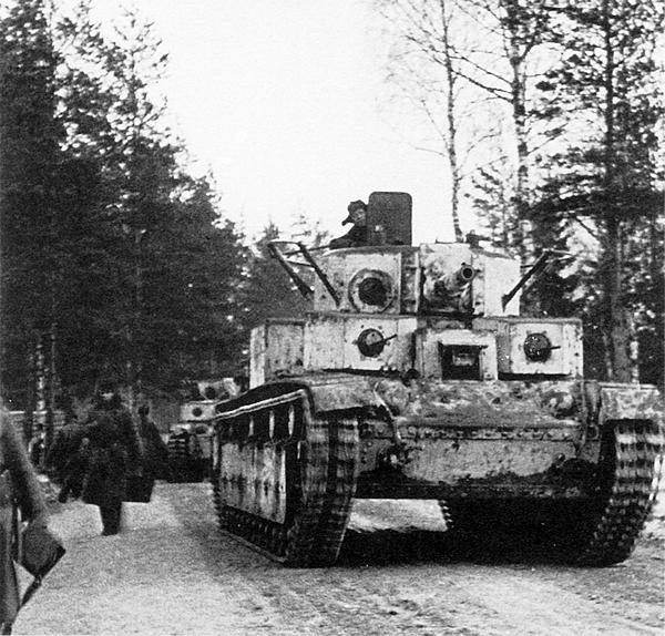 Отремонтированный финнами Т-28 направляется в тыл. Январь 1940 года (фото из коллекции Есы Муикку, Финляндия).