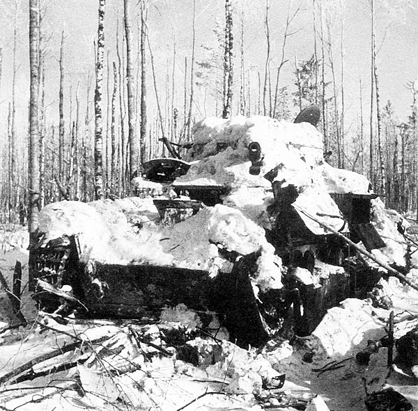 танка Т-28, высланного в атаку, прибыло на сборный пункт 5 машин, 2 сданы на СПАМ (сборный пункт аварийных машин — Прим. автора). Остальная матчасть требует ремонта, что и производится. 4 машины сгорели на поле боя, 1 перевернулась вверх гусеницами в противотанковом рву, 1 неизвестно где. При атаке уничтожено: ПТО — до 5 шт., ДОТ — до 3 шт. Ввиду того, что пехота не пошла и осталась за надолбами, которые севернее высоты 65,5 в 500 м, этот район нашими войсками не занят».Танк Т-28 91-го танкового батальона 20-й тяжёлой танковой бригады, подбитый в декабрьских боях 1939 года. Район высоты 65,5, февраль 1940 года (ЦМВС).