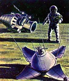 луноход с телескопическими "ногами" исследует поверхность Луны.А.Леонов, А.Соколов. В ОКЕАНЕ БУРЬ