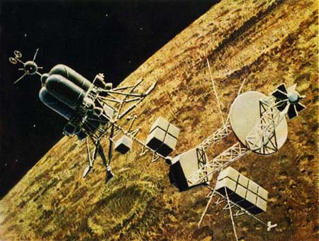 Спутники связи и наблюдения обеспечивают многочисленные экспедиции на Луне. Есть спутники наблюдения за Землей и земной орбитой - как мирного, так и военно-разведывательного назначения. Если вероятный противник будет настолько безумен, что попытается нанести удар по лунным центрам управления, орбитальные лунные спутники заранее предупредят об атаке. Но это для СССР не является главной целью. Главное - научные обсерватории, спутники связи, орбитальные порты, строительные модули для космических поселений и дальних экспедиций, которые собираются из лунных материалов на лунной орбите. Космические монтажники встретили на лунной орбите старый советский спутник - самый первый искусственный спутник Луны. Это земные спутники относительно быстро падают на ее поверхность из-за трения о самые верхние слои атмосферы. На Луне атмосферы нет и спутники теоретически могут летать неограниченное время.