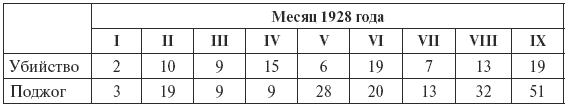 Динамика роста количества убийств и поджогов в 1928 году [55] .