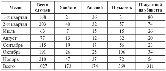 В сентябре 1928 года чекисты были вынуждены признать, что в последние месяцы значительно возросло число убийств советских и партийных работников, а так же количество поджогов. За девять месяцев 1928 года произошло сто убийств, а за аналогичный период предыдущего года – только пятьдесят.