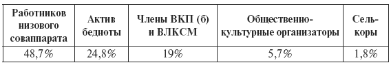 В начале 1929 года, как и в прошлые годы, жертвами кулацкого террора чаще всего становились: «работники низового соваппарата (95 фактов), актива бедноты (94 факта), члены ВКП(б) (один факт) и ВЛКСМ (54 факта)». [60]