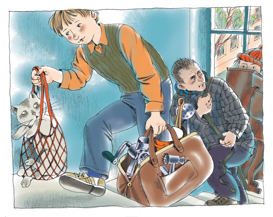 Девушка усмехнётся, а может быть, даже и засмеётся при виде такой странной картины. Мальчишка же страшно сконфузится, вскочит, одной рукой прижмёт к груди кота в авоське, другой – схватит огромную клетчатую сумку, распухшую от тарелок, кастрюль, сковородок и прочей кухонной утвари, и, карябая дном сумки о землю, поволочёт её к подъезду.