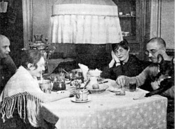 Лили, Осип, Александр Родченко и Варвара Степанова за обеденным столом в Гендриковом переулке в 1926 или 1927 г. Во второй половине 20-х в моде у жен лефовцев была прическа «гарсон», и Лили в первый и единственный