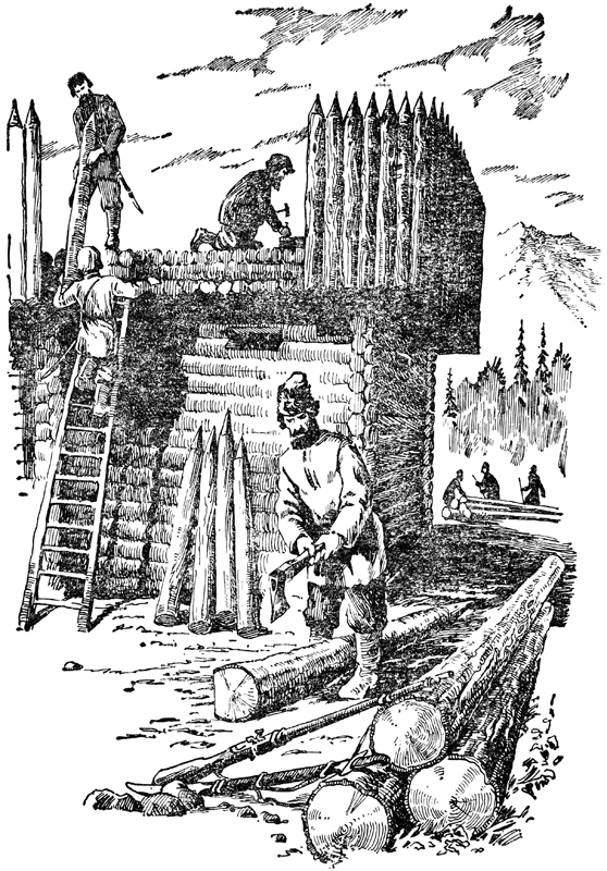 Исхудалые, почерневшие от ветра и солнца, оборванные, рубили казаки государев острог, самый украйный от всех крепостниц, городов и острогов сибирских, ладили себе избенки, по избенке на десяток, и другую поделку делали. Поставили избенку своего десятка и Федька с Афонькой. Оглядел Роман Яковлев ту избенку, потрогал нары, колки, в стены вбитые для пищалей и саблей, и сказал ласковое слово: хорошо, мол, постарались добры молодцы, ладная избенка получилась, не раз перезимуем в ней — и очаг для тепла есть, и оконца рыбьим пузырем затянуты.