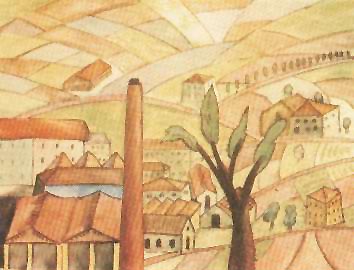 И ты красива в зелени долин!Да, фабрика, и ты вещей постылых символ,А также и отечества: охоты за деньгами,Рабами и пожизненной неволей.И ты красива! Радуют мне глазТон нежно — красный крыш твоихИ мачта, знамя — гордая труба!Привет же и тебе и будь любима,Чарующе отцветшая лазурь домишек бедных,Где пахнет мылом, пивом и детьми.В зелени лугов и фиолете пашенДомов коробчатость и красный колер крышИграют радостный изысканный концерт,Что предвещает флейту и гобой.Смеясь, я окунаю кисти в лак и киноварьИ пыльной зеленью касаюсь я полей.Всего ж великолепней красная труба,Прямостоящая в сем искривленном мире,Чудовищно напыщенная стрелкаРебячески громадных солнечных часов.