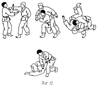 в) Продолжая тянуть противника руками на себя-вверх, перебросьте его через себя и немедленно выпрямитесь.