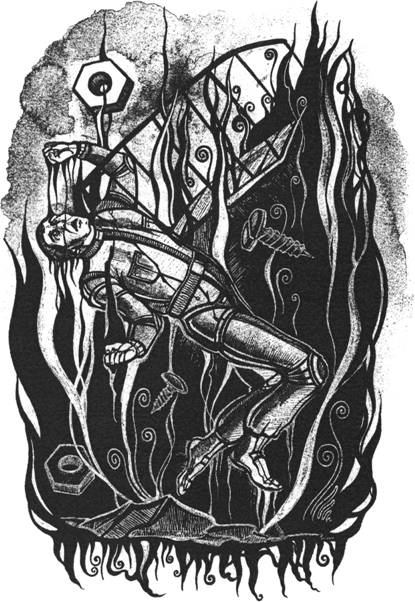 Алхимики, впрочем, презирали опасность. Кожа их была обесцвечена и несла следы многочисленных странных ожогов и язв. Из всех лишь Вооз регулярно носил респиратор, хотя атмосфера лаборатории воняла и отдавала ртутью, а у большинства присутствующих судорожно дрожали руки или надсадно хрипели легкие от многолетнего контакта с малоприятными химикалиями.
