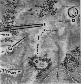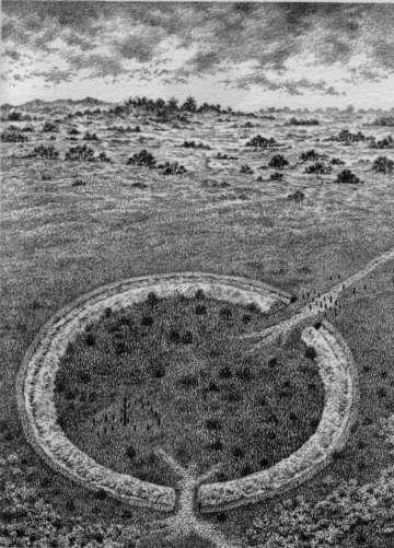 Теперь насыпь изобиловала травой и заросла сорняками. Немного орешника росло во рву, а густая ореховая поросль захватила обширную площадь внутри круглой насыпи так, что издалека храм казался рощей из небольших кустарников. Птицы гнездились там, где когда-то танцевал человек. Один дубовый столб алтаря до сих пор возвышался над плотным орешником, но он сильно накренился, а его когда-то гладкая древесина почернела и была покрыта рытвинами и грибком.