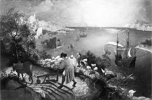 Рис. 3.7. Считается, что удовлетворение витальных потребностей приоритетно по отношению к социальным. Действительно, пахарь, пастух, рыбак или команда торгового корабля не замечают рухнувшего Икара. Зритель тоже не сразу находит главного персонажа на полотне Питера Брейгеля-старшего «Пейзаж с падением Икара». Попытка Икара долететь до Солнца была мотивирована, скорее всего, потребностью повысить свой социальный ранг, совершив поступок, недоступный другим людям