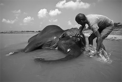 Рабочих домашних животных ежедневно чистят (рис. 4.14). Смысл этой процедуры, конечно не в том, чтобы слон был чистым. В дикой природе слоны, как и лошади, нимало не страдают без скребниц. Это делается для того, чтобы улучшить настроение животного и увеличить его привязанность к хозяину.