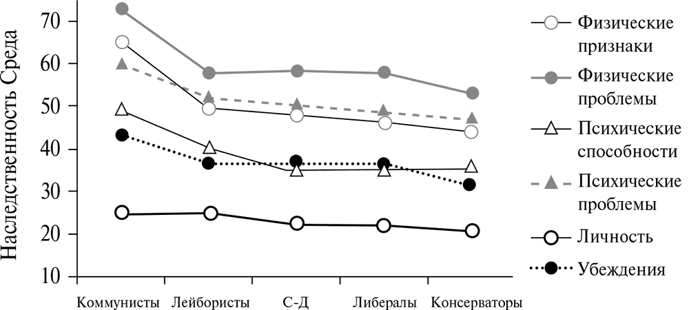Высокая наследуемость признака свидетельствует о большой роли генетических факторов, но не является окончательным доказательством отсутствия средовых влияний на его проявление. Многие признаки формируются в результате таких влияний среды, как поведение родителей. Такое воздействие оказывается с самого рождения, когда организм исключительно чувствителен к любым влияниям, поэтому широко используется прием с перекрестным воспитанием.