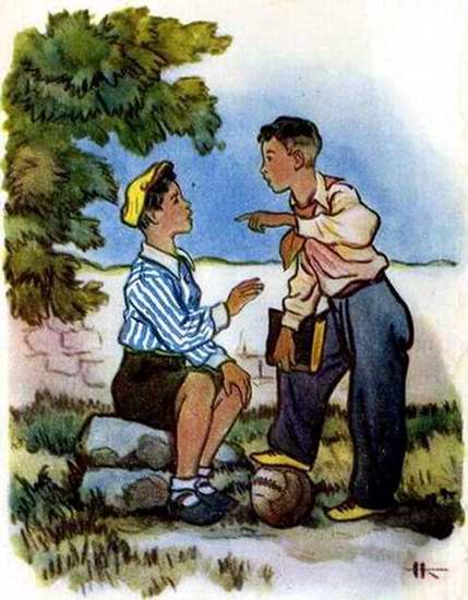 Жили-были два друга, два школьных товарища, Сережа и Костя. В одном доме проживали, за одной партой сидели, в одной и той же футбольной команде играли, вместе уроки готовили, вместе в кино ходили, — словом, прозвали их неразлучниками.