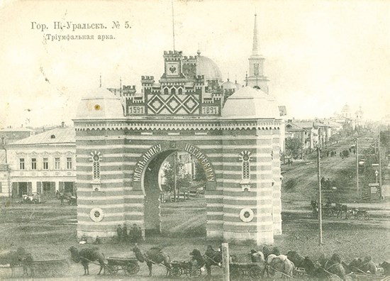 К приезду будущего царя Николая II жители Уральска (ныне в Казахстане) поставили арку – в память о казаках, триста лет самоотверженно служивших царям Романовым и Отечеству. Здание было выполнено в мавританском стиле (далековато от казаков и Романовых, но красиво). Ныне арки нет, а площадь названа в честь Абая Кунанбаева, родоначальника казахской