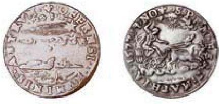 Вот хотя бы одна: носилки, на покрывале которых лежат шлем и меч. К носилкам прислонена книга, а над шлемом блестит комета. На надписи читаем: «Угроза кометы», а на оборотной стороне более длинное поучение: «Бог посылает нам комету, чтобы мы исправили нашу жизнь. 1618 г.». К этому же событию относится более скромный по изображению экземпляр – прут, свеча, сложенные руки, обращённые к Солнцу. Надпись по кругу гласит: «Никто не будет ранен, кто чтит Бога».