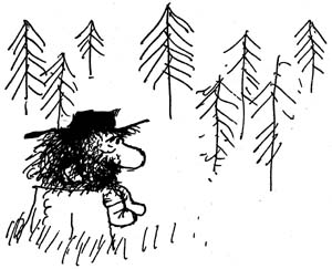 Потом в лесу все стихло. Дядюшка Ау слез с сосны и побрел домой. Очень приветливы были сегодня сосны Мягко стелился мох под ногами. Птицы порхали над головой, в березнике стрекотала сорочья стая, как колонна сенокосилок. Где-то залаяла собака.