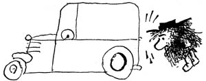 Заложив руки за спину, мрачно и сурово он двинулся навстречу приключениям. Он шел и шел по дороге в мрачной и тяжелой задумчивости, пока не треснулся головой о железный кузов пикапа.