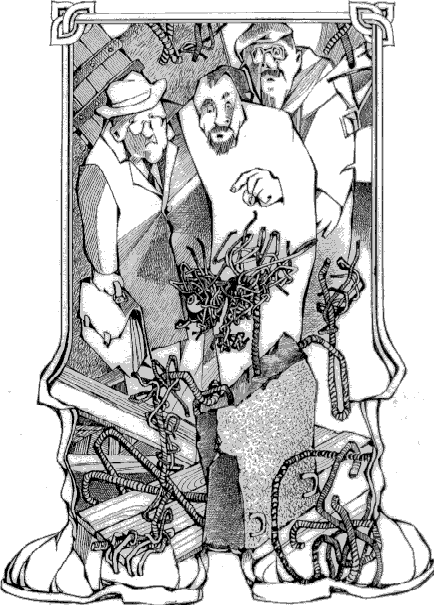 Члены комиссии заподозрили неладное лишь на втором часу блужданий по стройке, когда непонятным образом вышли опять на залитый летним солнцем пятый, и пока что последний, этаж. Внизу, на холме вынутого грунта, поросшего зелёной травкой, стоял и задумчиво смотрел на них сторож Петрович. У ног его, задрав встревоженные морды, сидели дворняжки Верный и Рубин.