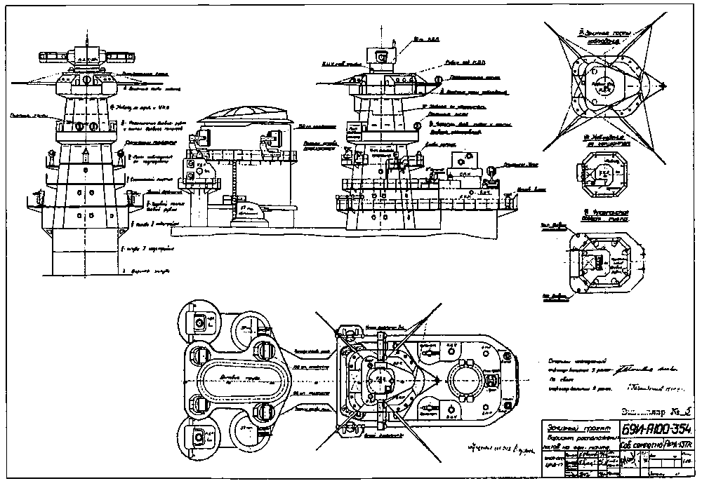 Тяжелый крейсер проекта 69И: расположение постов на фок-мачте и первой трубе