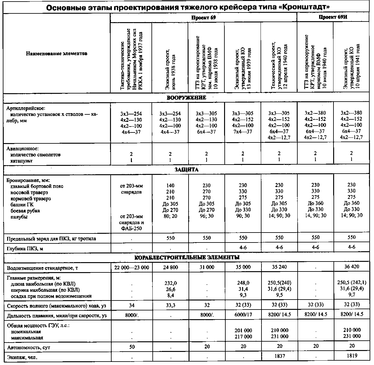 его в окончательном виде совместно с НКВМФ к 15 октября 1941 года.Как уже отмечалось, разработка эскизного проекта 69И показала, что тяжелый крейсер с 380-мм артиллерией будет иметь стандартное водоизмещение не менее 30 660 т, нормальное 36 240 т и полное 42 830 т. Из-за раздвижения осей башен ГК приходилось несколько увеличивать протяженность цитадели, а также и ПКЗ (со 147,5 до 156,5 м), при этом длина корабля по КВЛ возрастала с 240 до 242,1 м. Главный конструктор корабля Ф.Е. Бесполов вспоминал, что вследствие сдвига главного броневого пояса в корму, где обводы корпуса приобретали сложную криволинейную форму, пришлось бы придавать такую форму и замыкающим цитадель 230-мм броневым плитам, от чего все броневые заводы категорически отказались. Но до реальной необходимости поставки таких плит дело не дошло, так как с началом Великой Отечественной войны постройка кораблей была прекращена.