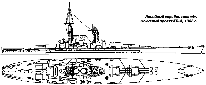 уз.С арестом прежнего руководства УМС, естественно, появилась возможность свободно критиковать принятые им решения. Развивая и обостряя свои мысли, изложенные еще в заключении по эскизному проекту 25, А.Э. Цукшвердт 21 июля 1937 г. докладывал врио наморси Л.М. Галлеру, что в связи со сменой руководства УМС основные установки проектирования ЛК «Б» должны быть утверждены заново или отвергнуты. Далее он подверг ТТЗ и проект 25 жесткой критике, отметив нечеткость назначения корабля («корабль на многие годы должен истреблять всякие крейсера и ЛК «Дойчланд», позднее к этим задачам словесно была добавлена возможность сражения с линкором типа «Шарнхорст»), в результате, для истребления крейсеров линкор «Б» слишком велик и дорог, а для борьбы с линкорами очень слаб. Для решения задач морской обороны страны, докладывал А.Э. Цукшвердт, рисуется необходимой постройка трех типов крупных кораблей: линкоров типа «А» с девятью 406-мм орудиями (для ТОФ), типа «Б» с девятью 356-мм орудиями, со скоростью 30–32 уз (для европейских морей); а для истребления крейсеров — тяжелый крейсер с 12 254—280-мм орудиями, скоростью хода 34–35 уз и водоизмещением 26 000— 30 000 т.