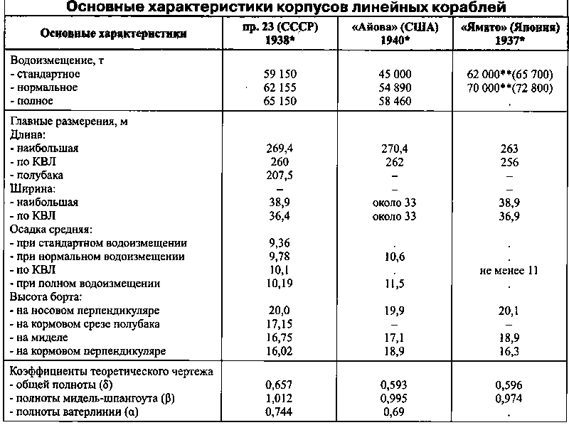 По результатам проведенной ЦКБ-4 в первой половине 1939 года доработки окончательного технического проекта 23 стандартное водоизмещение составило 59 150 т, нормальное 62 155 т, а полное — 65 150 т. Эти данные и были утверждены постановлением КО при СНК СССР от 13 июля 1939 года.