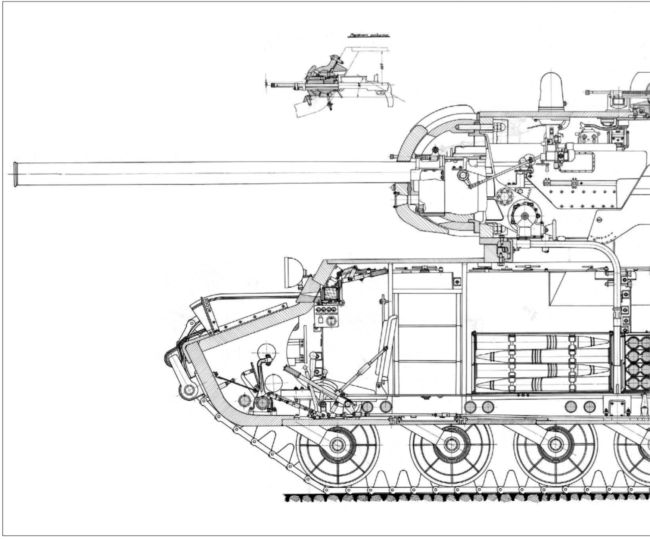 Работа заряжающего стеснена сидением командира машины. Более доступно вынимаются только 6–8 кассет, которые находятся непосредственно под заряжающим. Работе заряжающего мешают гнезда для пулеметной укладки, смонтированные на моторной перегородке».
