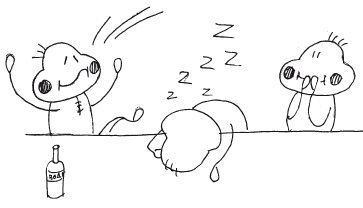 Из гостей вызываются 5–6 желающих поучаствовать в конкурсе. На стол ставятся большие рюмки (или бокалы) на одну меньше, чем количество участников. В рюмки наливается водка, коньяк, вино (все, что пожелаете). По команде ведущего (например, хлопок в ладоши) участники начинают ходить вокруг стола. Как только ведущий подает условный сигнал (тот же хлопок), участникам необходимо схватить какую-нибудь из рюмок и тут же выпить ее содержимое. Тот, кому рюмки не хватило, выбывает. После этого одна рюмка убирается со стола, остальные наполняются, и игра продолжается так же, как описано выше. Главное, чтобы рюмок всегда было на одну меньше количества играющих. Игра заканчивается тогда, когда кто-либо из двух оставшихся участников выпьет последнюю рюмку. При отсутствии закуски и достаточно вместительных рюмках финал выглядит неописуемо, так как хождением вокруг стола это назвать обычно трудно.