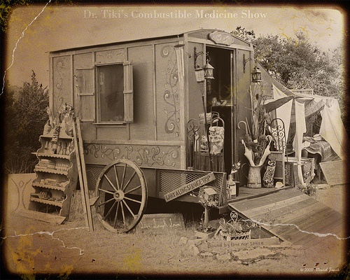 Передвижное шоу д-ра Тикки. Лекарства от всего, скупка-продажа подержанных зонтов, крысиный яд и другие полезные вещи! Только сегодня и только у нас! Доктор Тикки выступит с лекцией! Торопитесь!