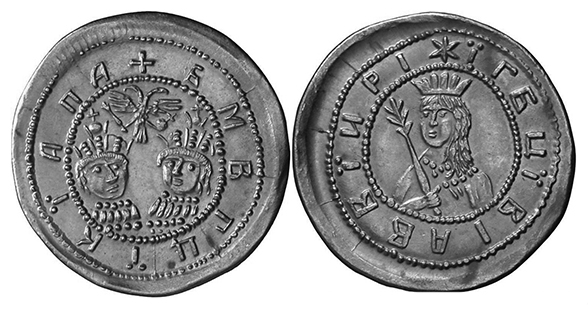 Наградной «угорский» золотой за Крымские походы с изображениями Петра I и Ивана V на одной стороне, царевны Софьи – на другой. 1689 год