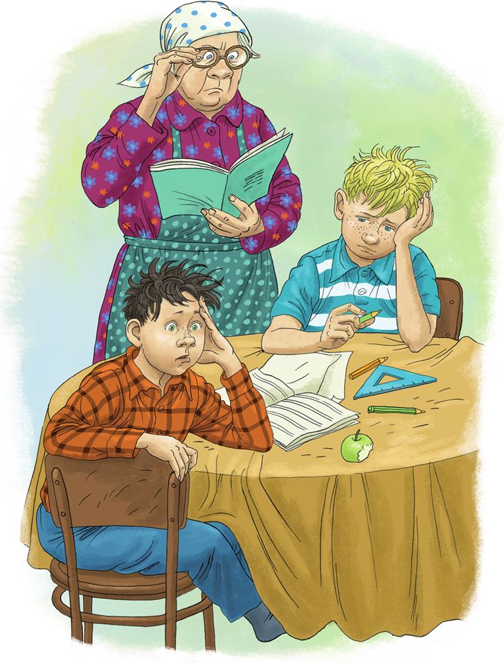 Братья метнулись от окна к большому круглому столу, где были в полном беспорядке разбросаны раскрытые школьные пеналы, карандаши, ручки, учебники и прописи. Если честно, бабушка Родьки и Светлика была совсем не строгая (бабушки, наверное, и не бывают строгими по-настоящему). Но когда дело касалось учёбы, она становилась очень серьёзной. И даже называла внуков полными именами, чтобы они тоже чувствовали себя взрослыми